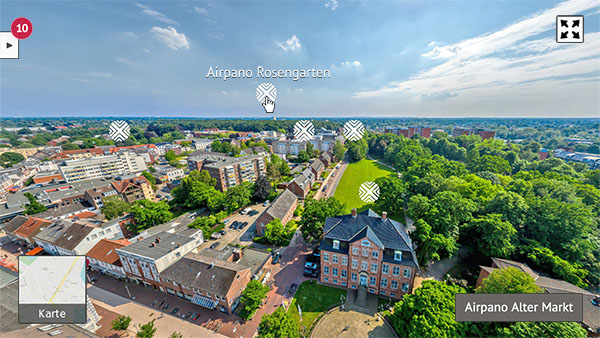 Auch Touristiker und Wirtschaftsförderer haben das Potential virtueller Touren erkannt und zeigen Touristen, Investoren und wichtigen potentiellen Arbeitskräften auf einem 360° Stadtrundgang die schönsten Ecken ihrer Stadt.